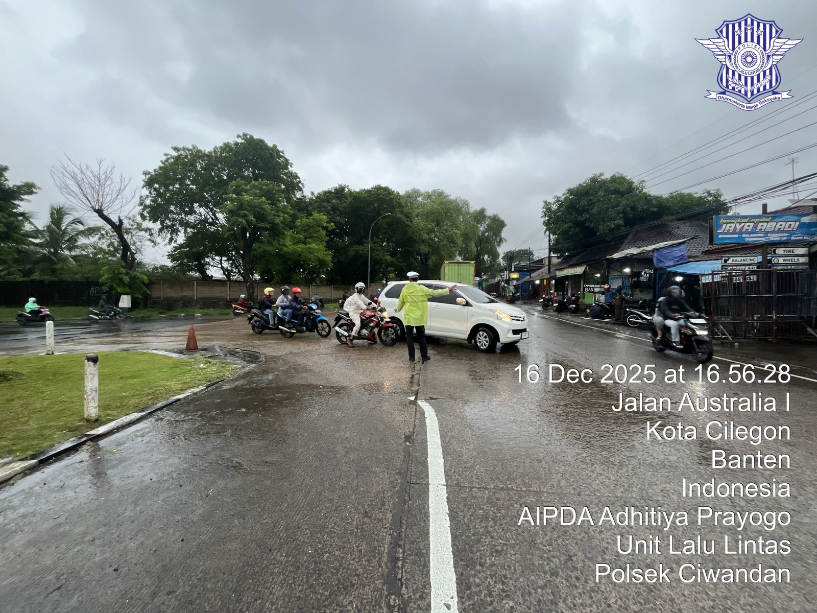 Cilegon - Guna Kelancaran Lalu-lintas Personil Unit Lantas Polsek Ciwandan Polres Cilegon Polda Banten melaksanakan pengaturan lalu-lintas di Simpang Beringin Ciwandan Pertigaan Kawasan Industri KSP/ KIEC I  kelurahan Warnasari Kecamatan Citangkil Kota Cilegon, Rabu (17/12/2025).