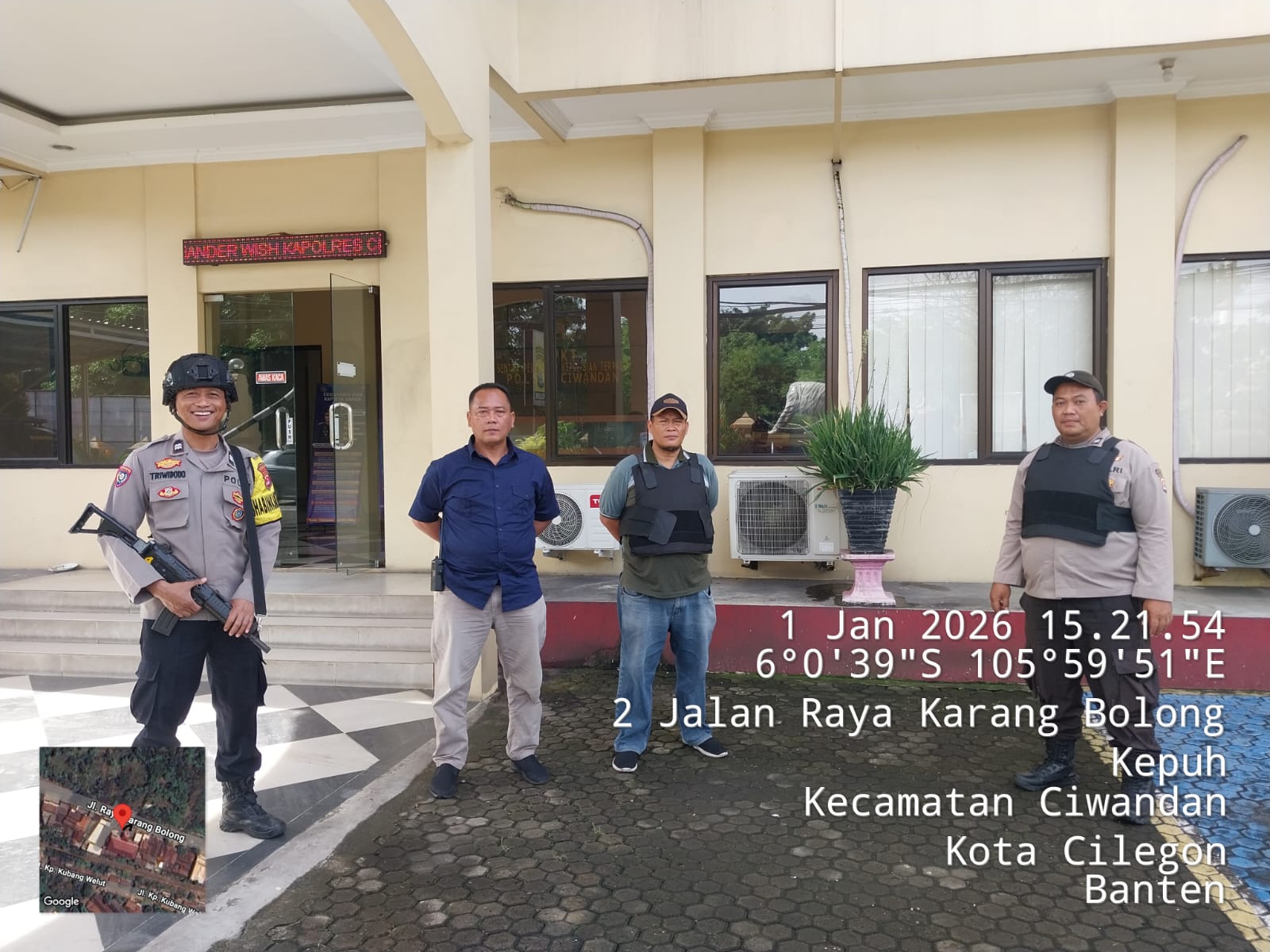 Cilegon - Guna mengantisipasi adanya potensi ancaman dan gangguan terhadap keamanan kantor maupun keselamatan personel piket jaga, Personil Polsek Ciwandan Polres Cilegon Polda Banten selalu tingkatkan kesiapsiagaan dan kewaspadaan dengan rutin menggelar kegiatan Sistem Pengamanan Mako (Sispam Mako), Kamis (01/01/2026).