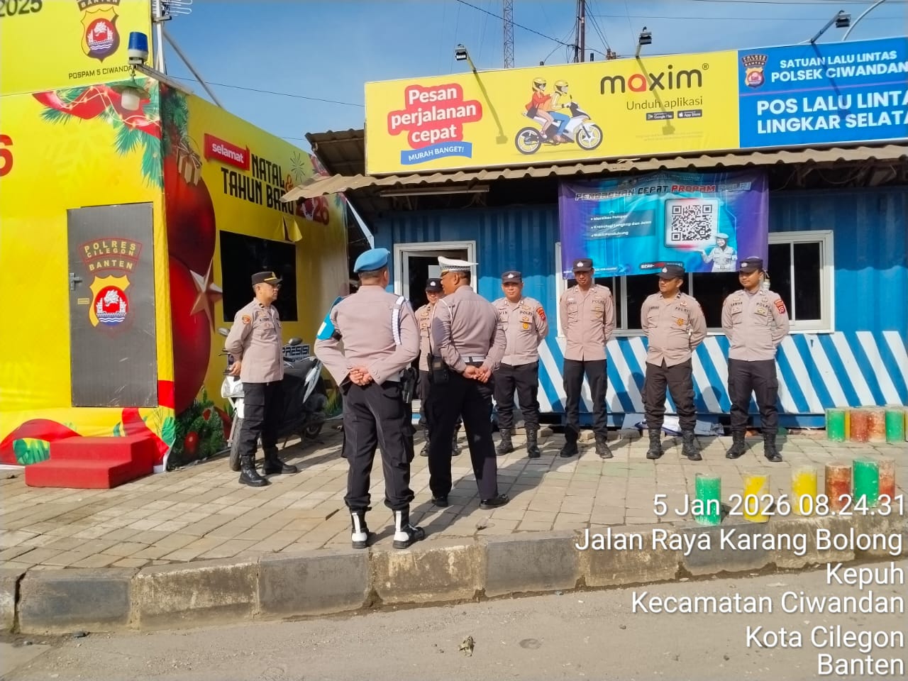 Kapolres Cilegon Polda Banten AKBP Dr. Martua Raja Taripar Laut Silitonga yang di wakili Kapolsek Ciwandan Polres Cilegon Polda Banten Kompol Andi Suherman mengatakan, "Guna terciptanya kelancaran arus Libur Natal Dan tahun Baru 2025-2026, Pospam 5 Ciwandan merekayasa arus lalu lintas yang akan menuju Pelabuhan Pelindo Banten.