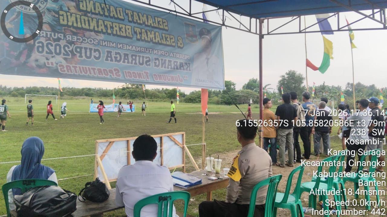 *Polres Cilegon* - Personel Polsek Cinangka Polres Cilegon Polda Banten melaksanakan monitoring dan pengamanan kegiatan Turnamen Open Sepak Bola Putri Tournament dan sebagai bentuk mendukung Program Quick Wins Presisi Polri, Rabu (07/01/2026)