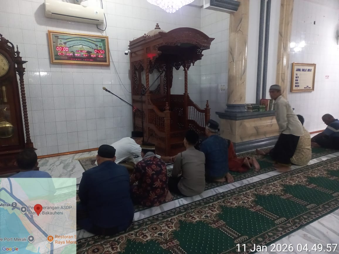 Cilegon – Personil Kskp Merak Polres Cilegon Polda Banten menggelar kegiatan Pembinaan Rohani dengan shalat subuh keliling di Masjid Yang ada Di Daerah hukum Polsek Kp Merak Polres Cilegon Polda Banten, Minggu (11/01/2026).