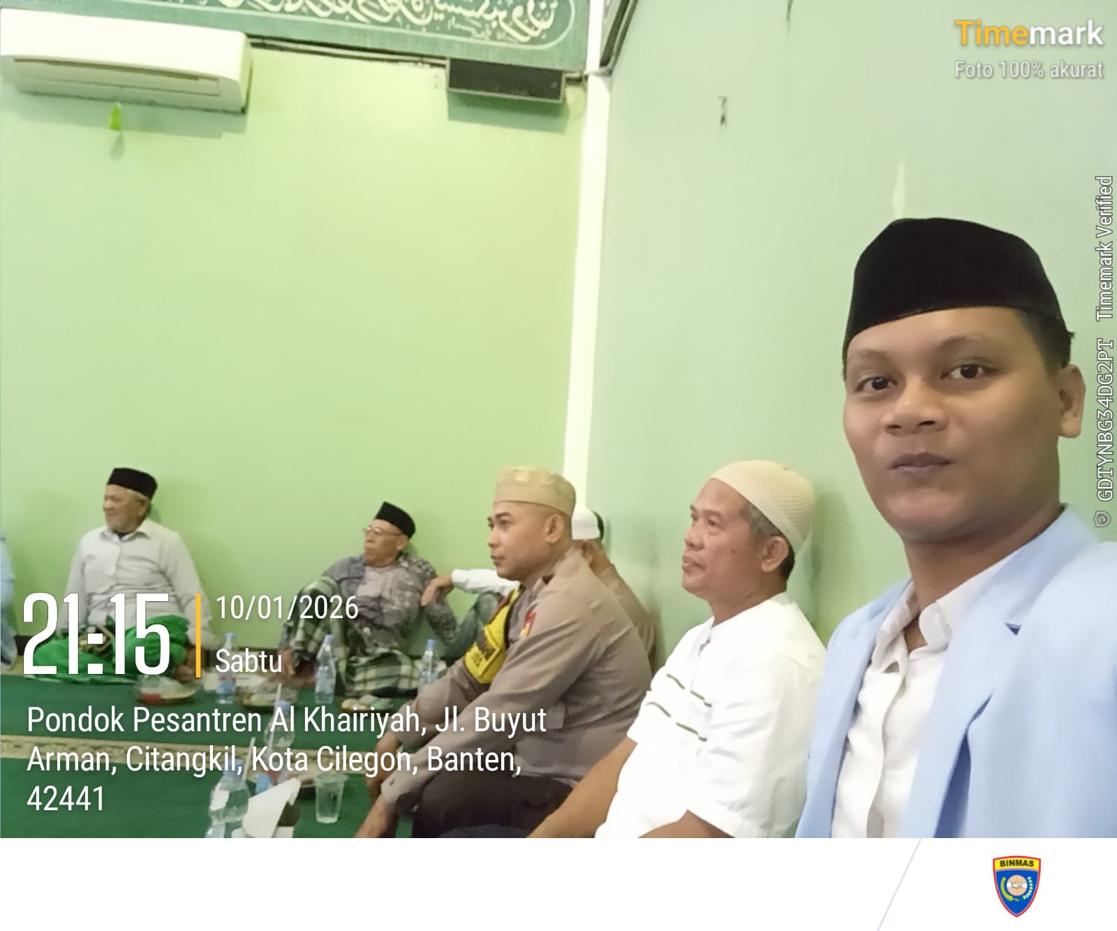 Cilegon – Dalam Upaya mewujudkan situasi kamtibmas yang aman dan kondusif dalam Pelaksanaan Peringatan Hari Besar Islam (PHBI) Isra Mi'raj, Kapolsek Ciwandan Polres Cilegon Polda Banten KOMPOL Andi Suherman, S.H,M.M Beserta Bhabinkamtibmas Polsek Ciwandan Polres Cilegon Polda Banten terus mempererat tali silaturahmi dan menjalin komunikasi aktif dengan warga masyarakat Binaannya, Minggu (11/01/2026).
