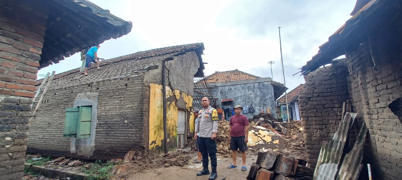 Cilegon - Bhabinkamtibmas Kelurahan Tegal Ratu, Brigadir Dede Abu, langsung melakukan pengecekan ke lokasi kejadian rumah rubuh di Lingkungan Kubang Saron RT 004 RW 002 Kelurahan Tegal Ratu Kecamatan Ciwandan Kota Cilegon.