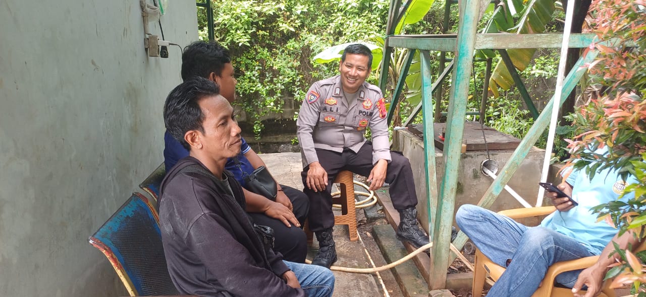 Personil Bhabinkamtibmas Polsek Kawasan Pelabuhan Banten berbincang ke Masyarakat Sekitar Pelabuhan
