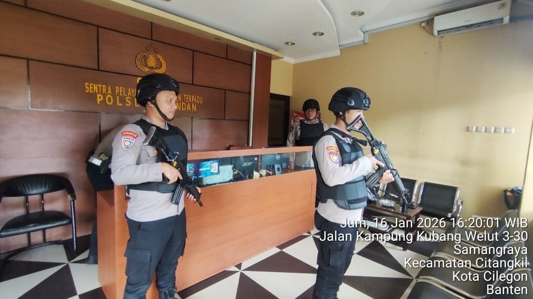 Cilegon - Guna mengantisipasi adanya potensi ancaman dan gangguan terhadap keamanan kantor maupun keselamatan personel piket jaga, Personil Polsek Ciwandan Polres Cilegon Polda Banten selalu tingkatkan kesiapsiagaan dan kewaspadaan dengan rutin menggelar kegiatan Sistem Pengamanan Mako (Sispam Mako), Jum'at (16/01/2026).