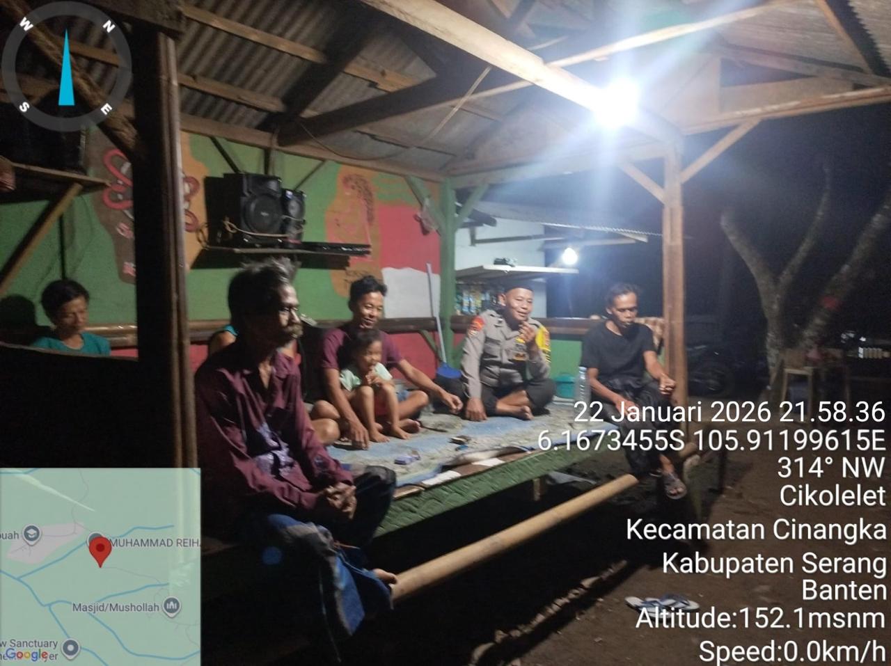 *Polres Cilegon* || Personil Bhabinkamtibmas Polsek Cinangka melaksanakan Program Komandan Wish Kapolda Banten RONDA SATKAMLING menyampaikan komunikasi dengan Petugas Siskamling agar berperan aktif dalam menciptakan Harkamtibmas yang aman dan Kondusif, Jumat (23/01/2026).