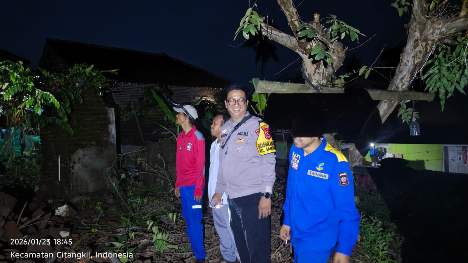 Cilegon, 23 Januari 2026 - Bhabinkamtibmas Kel. Samangraya, BRIPKA Marisco, S.H., merespon laporan rumah roboh di Link. Ciriu Rt 01/06 Kel. Samangraya. Rumah milik Sdr. Ahmad roboh pada Selasa, 20 Januari 2026, tanpa korban jiwa karena sudah tidak dihuni. Penyebab diduga struktur bangunan tua dan tanpa sloof besi. Kerugian materiil sekitar 25-30 juta. Petugas mengimbau pemilik untuk renovasi guna antisipasi kejadian susulan. Situasi aman dan tertib.