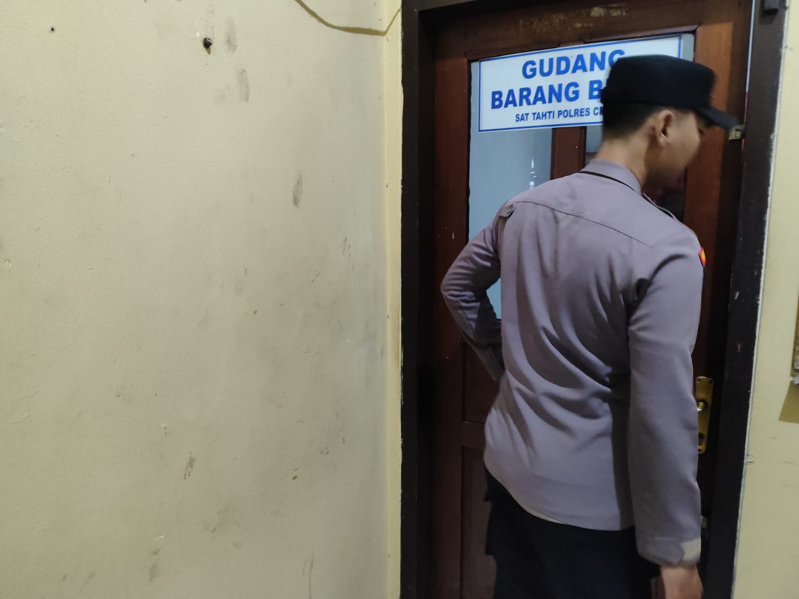 Cilegon, Polres Cilegon Polda Banten. Di gudang barang bukti Polres Cilegon. Anggota SatTahti polres cilegon mengecek barang bukti. (28/01/2026)