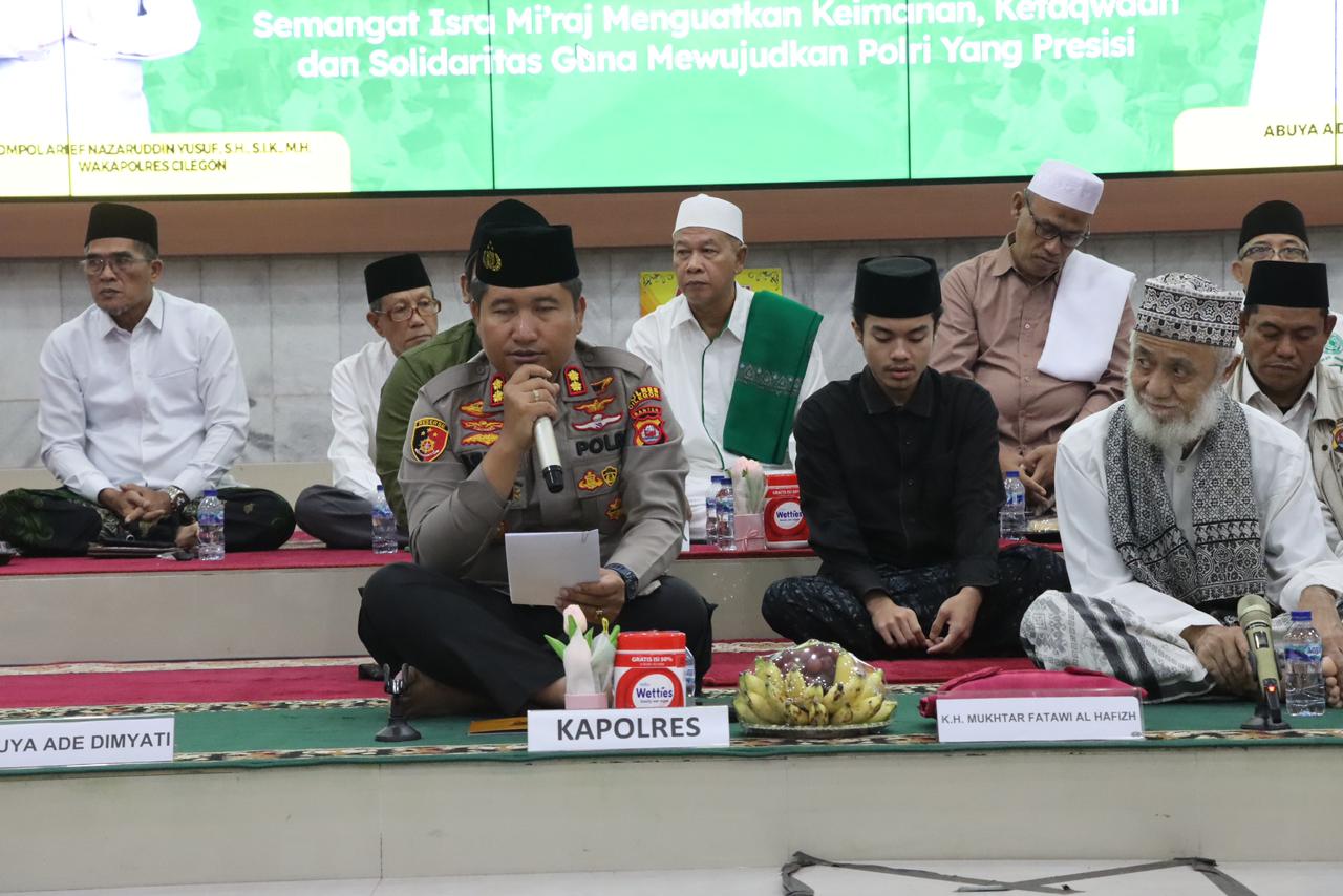 Kegiatan diawali dengan sambutan Kapolres Cilegon yang menekankan bahwa peringatan Isra Mi’raj merupakan momentum spiritual yang sarat dengan nilai universal. Kapolres menyampaikan pentingnya keseimbangan antara hubungan vertikal dengan Tuhan dan hubungan horizontal antar sesama manusia, keteguhan dalam menghadapi ujian kehidupan, serta moderasi dan kerukunan sebagai fondasi menjaga persatuan.