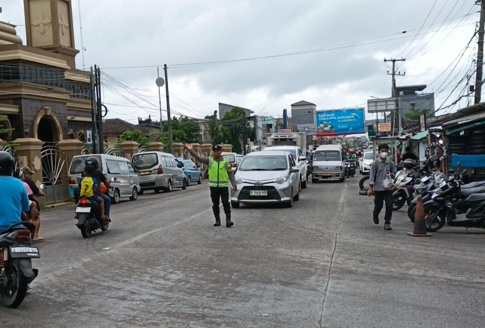 Personel Polsek Anyar Lakukan Pengaturan Lalu Lintas Supaya Jalur Aman Lancar