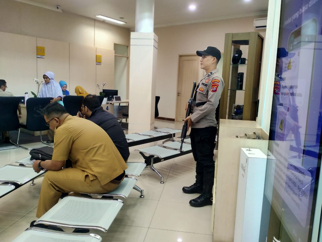 Pastikan kemanan dan kenyamanan nasabah, Satpamobvit Polres Cilegon hadir amankan Bank.