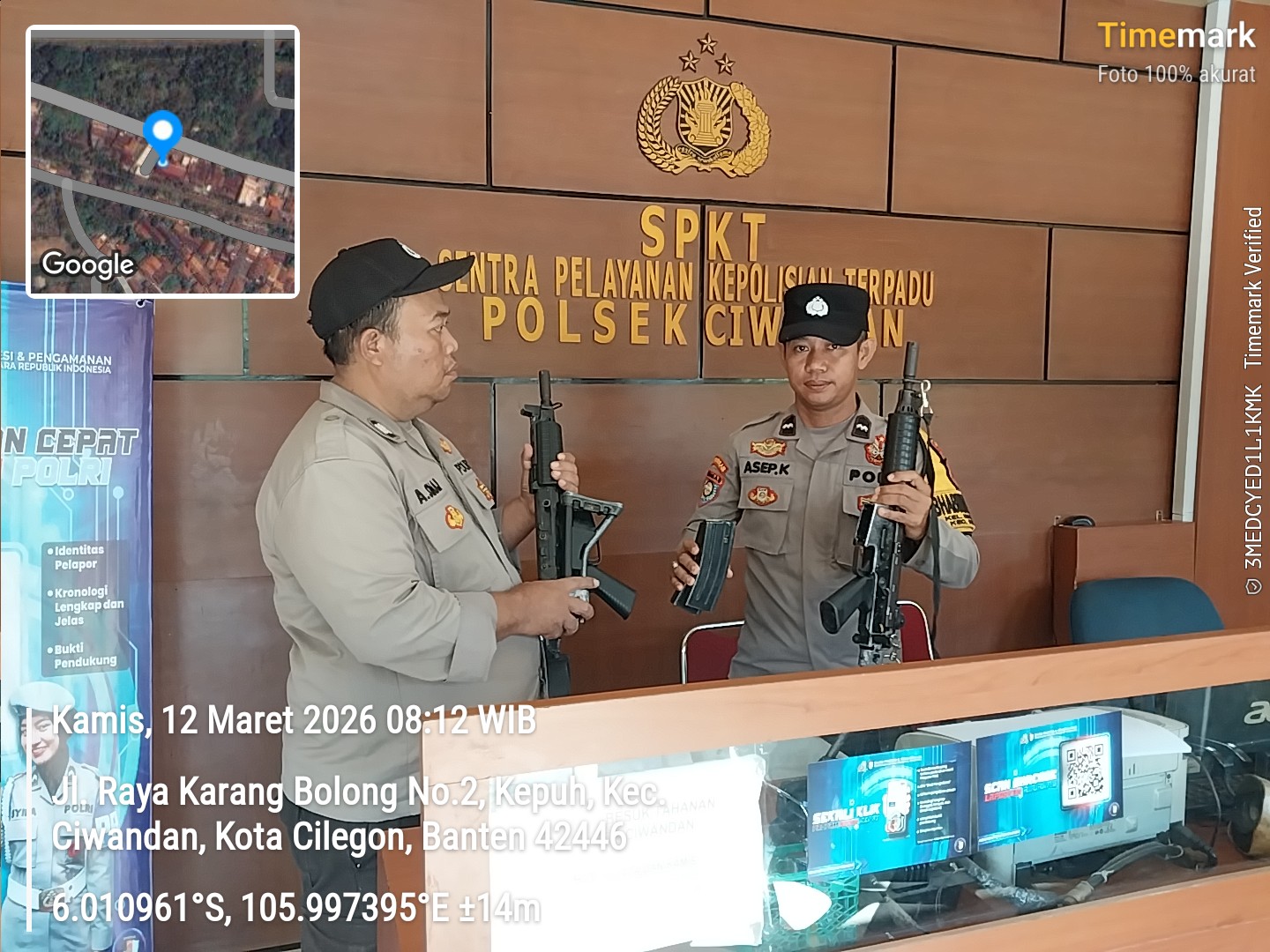 Cilegon - Sebelum melaksanakan tugas jaga Mako Personil Polsek Ciwandan Polres Cilegon Polda Banten Melaksanakan Serah Terima Tugas jaga dan Mengecek Kelengkapan barang-barang Inventaris, Kamis (12/03/2026).