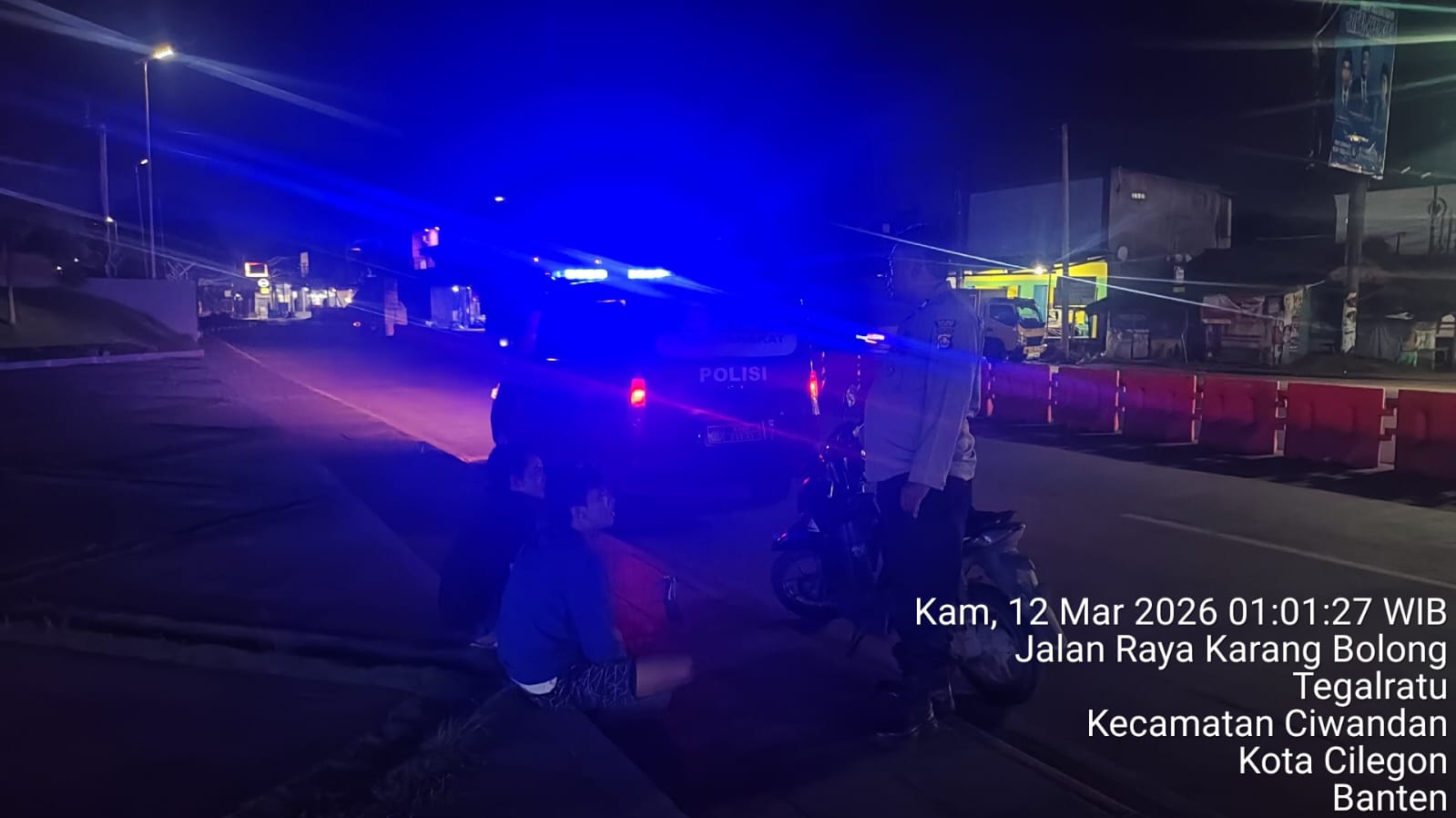 Cilegon - Personil Polsek Ciwandan Polres Cilegon Polda Banten Dalam Pelaksanaan Kegiatan Patroli dengan menyalakan lampu rotator berwarna biru di Daerah Hukum Polsek Ciwandan Polres Cilegon Polda Banten dari malam hingga dini hari, dalam rangka menciptakan situasi aman dan kondusif, Kamis (12/03/2026).