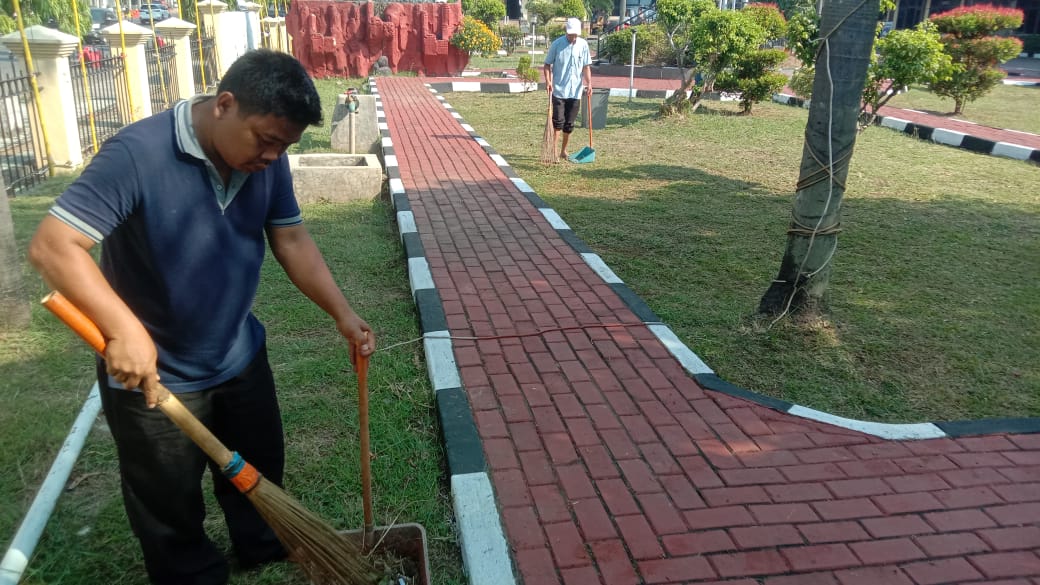 Jaga Lingkungan Kerja Sehat, SIUM Polres Cilegon Laksanakan Bersih-Bersih Kantor