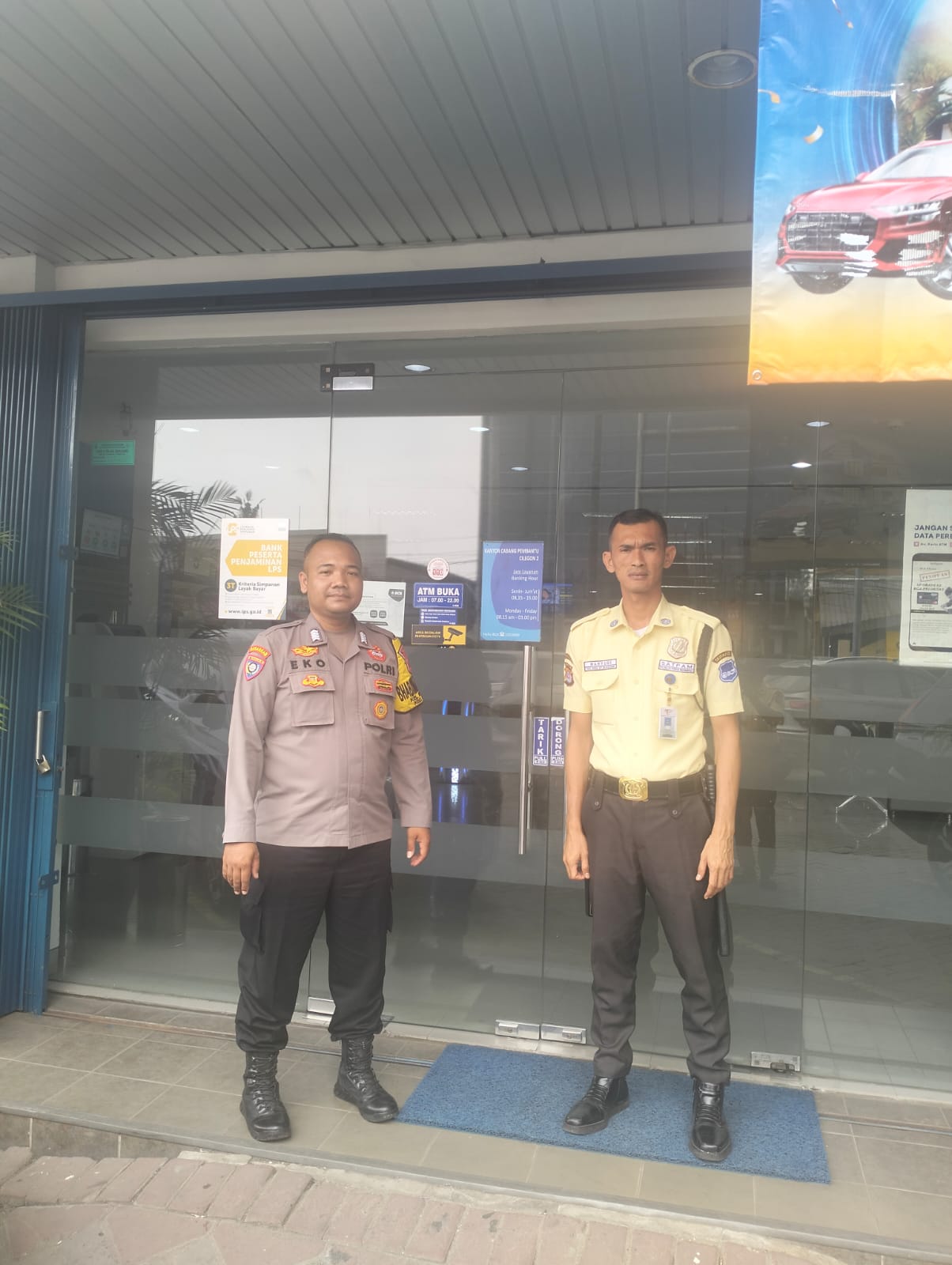 CILEGON - Personel Polsek Cibeber Polres Cilegon Polda Banten menyambangi petugas keamanan (satpam) di wilayah hukum Polsek Cibeber untuk memberikan imbauan keamanan dan ketertiban masyarakat (kamtibmas).