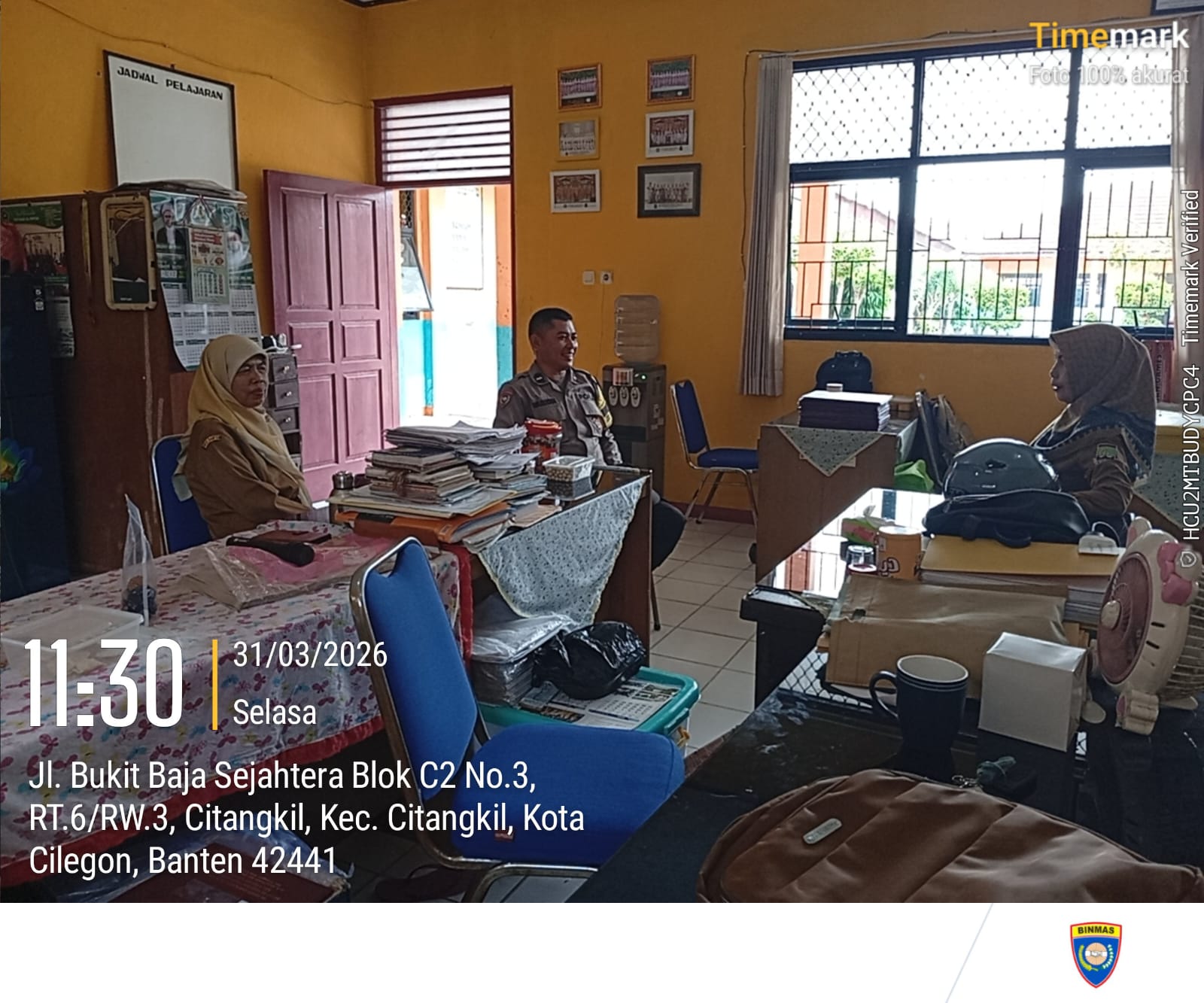 Cilegon - Bhabinkamtibmas Polsek Ciwandan Polres Cilegon Polda Banten Sampaikan Pesan-Pesan Kamtibmas Kepada Dewan Guru, Selasa (31/03/2026).