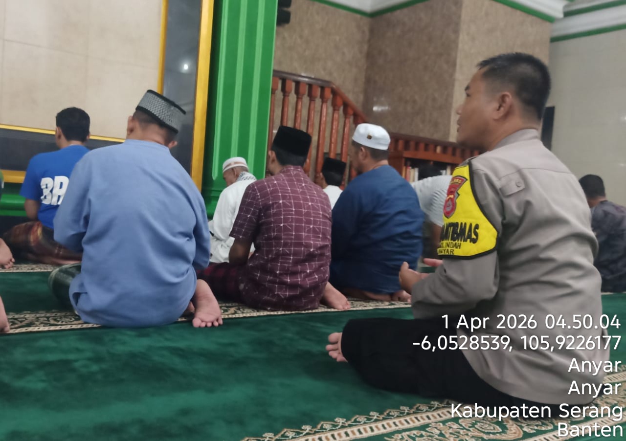 Cilegon – Polres Cilegon Polda Banten, Personil Polsek Anyer Polres Cilegon menggelar kegiatan Pembinaan Rohani dengan shalat subuh keliling di Masjid At Taubah Gang. Masjid Ds. Anyar Kec. Anyar Kab. Serang, Rabu (01/04/2025).