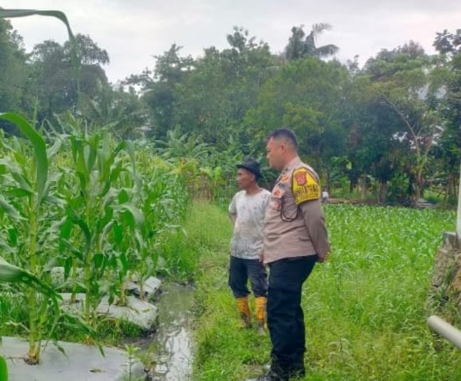 Personil Polsek Purwakarta bersama warga Cek Dan Monitoring Tanaman Jagung