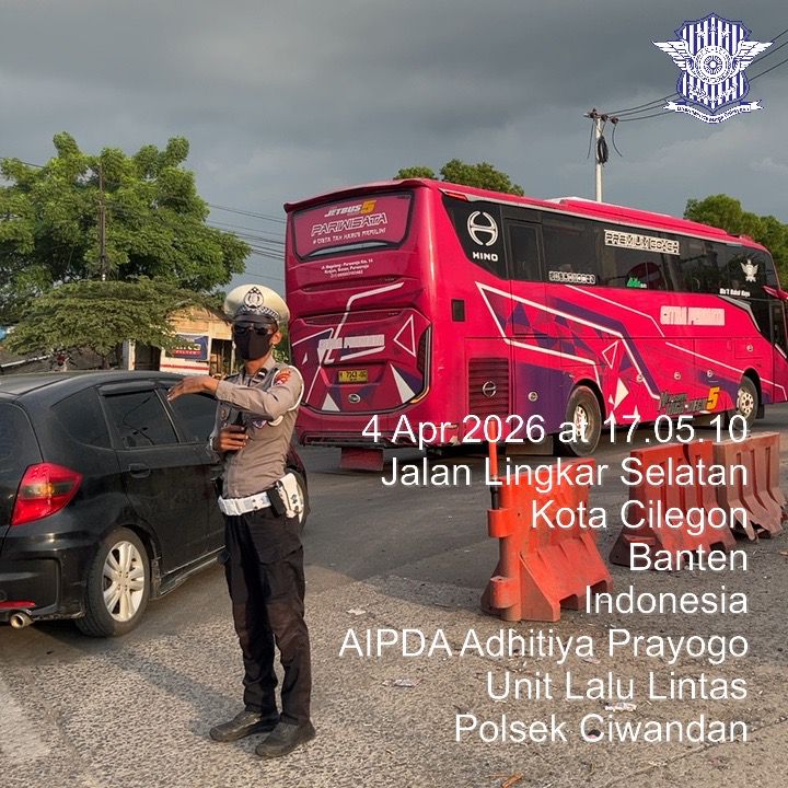 Cilegon - Guna Kelancaran Arus Lalu-Lalu-lintas Jalur Wisata Yang ada di daerah hukum Polsek Ciwandan Polres Cilegon Polda Banten,Para Wisatawan menuju Pantai Anyer-Cinangka, Personil Polsek Ciwandan Polres Cilegon Polda Banten Laksanakan Pengaturan Dan Rekayasa Lalu-lintas Wisata, Sabtu (04/04/2026).