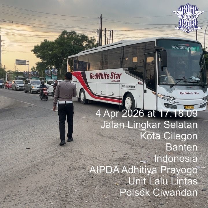 Cilegon - Guna Kelancaran Arus Lalu-Lalu-lintas Jalur Wisata Yang ada di daerah hukum Polsek Ciwandan Polres Cilegon Polda Banten,Para Wisatawan menuju Pantai Anyer-Cinangka, Personil Polsek Ciwandan Polres Cilegon Polda Banten Laksanakan Pengaturan Dan Rekayasa Lalu-lintas Wisata, Sabtu (04/04/2026).