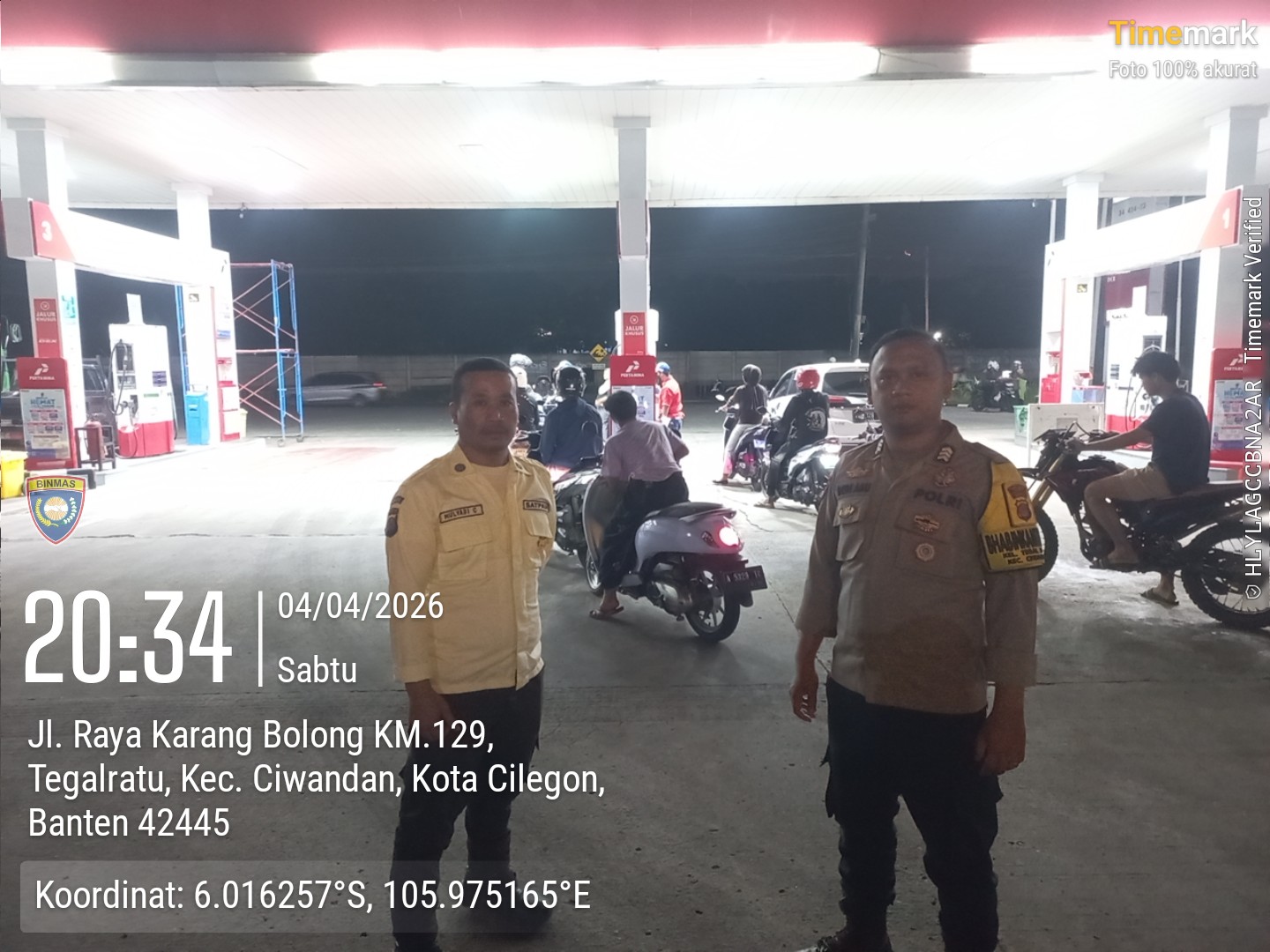 Cilegon - Kepolisian Polsek Ciwandan Polres Cilegon Polda Banten, melakukan pengecekan stok Bahan Bakar Minyak (BBM) di dua SPBU di wilayah Ciwandan, Cilegon, Sabtu (04/04/2026).