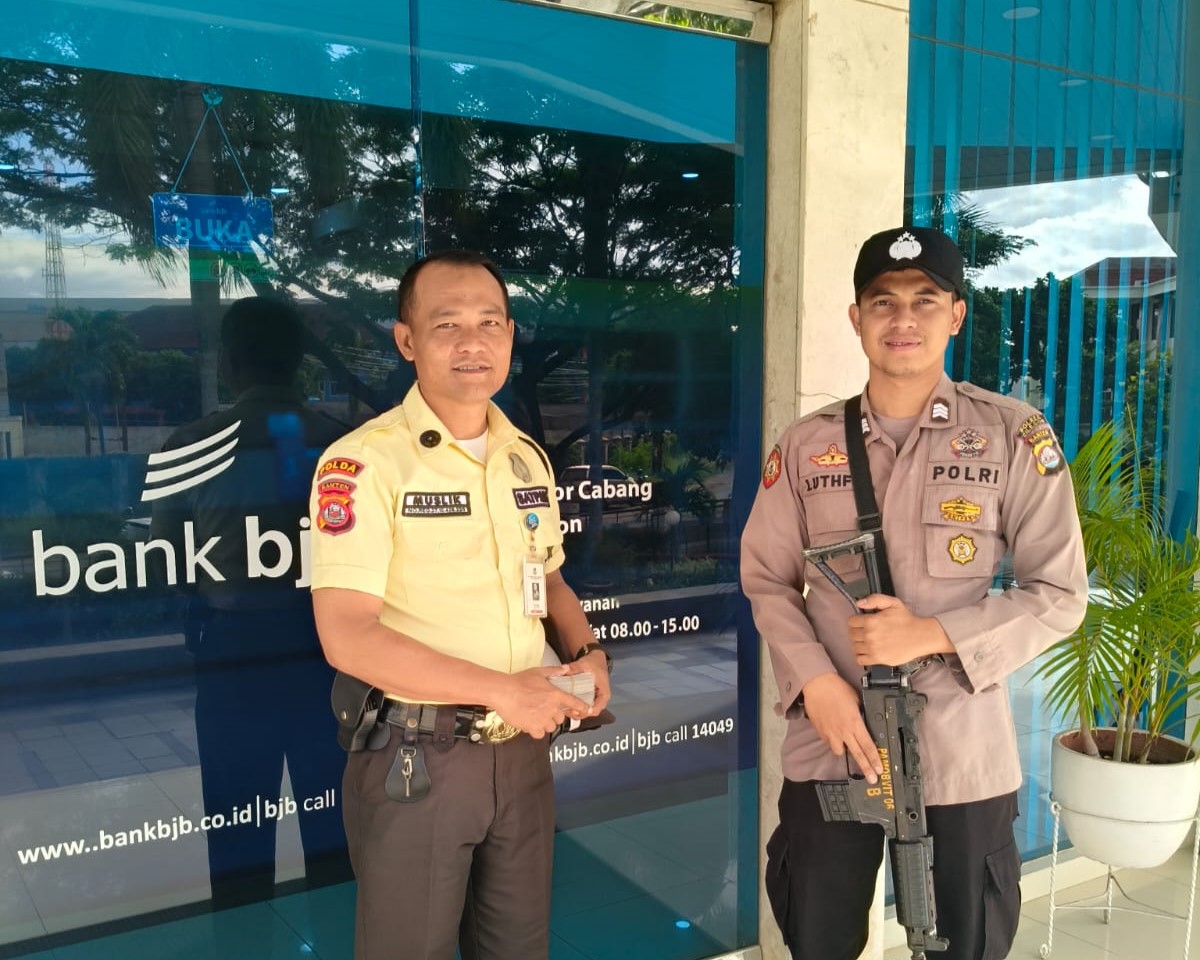 Pastikan kemanan dan kenyamanan nasabah, Satpamobvit Polres Cilegon hadir amankan Bank.
