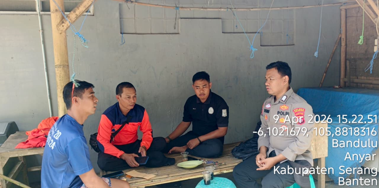 Cilegon - Polres Cilegon Polda Banten. Bhabinkamtibmas Desa Bandulu Kec. Anyer BRIPKA Asep Iskandar memberikan Rasa aman dilingkungan dengan melaksanakan patroli dialogis dan menyapa warganya serta menyampaikan himbauan kamtibmas di Pantai Panjang Kp. Jambangan Rt 002/002 Ds. Bandulu Kec. Anyar Kab. Serang. Kamis (09/04/2026).