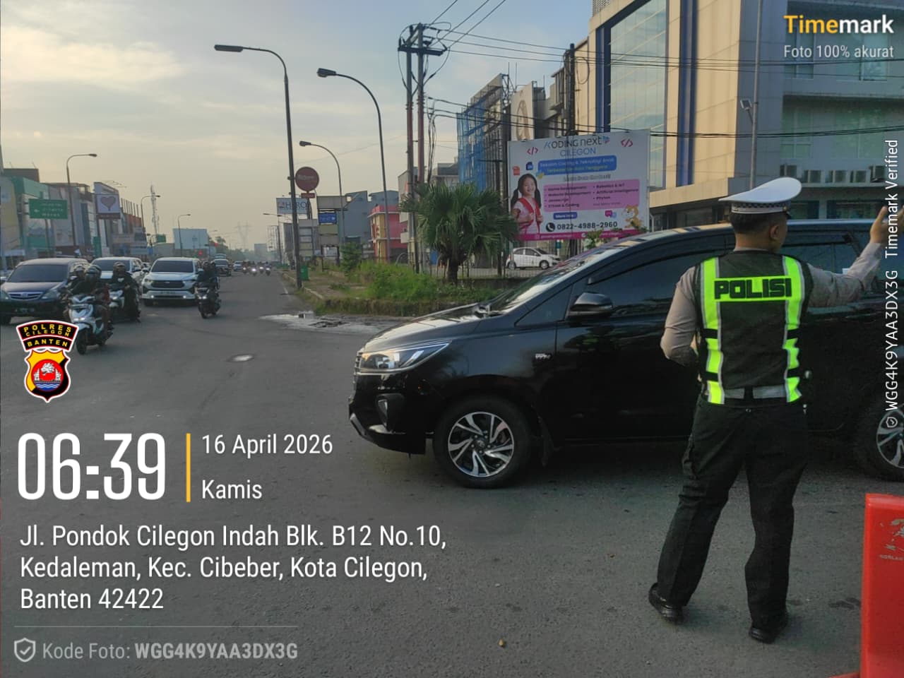 Cilegon, Satlantas Polres Cilegon Polda Banten – Berikan pelayanan kepada masyarakat Kasat lantas Polres Cilegon AKP Ridwan memerintahkan jajaran lalulintas untuk melaksanakan pengaturan lalu lintas di penggal – penggal jalan yang rawan kemacetan di Kota Cilegon, (Kamis,16/4/2026)